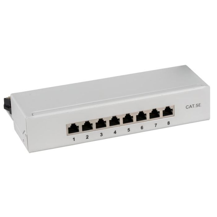 Високото качество на екранирания мини пач панел с 8 порта RJ45, категория 5е осигурява отлична производителност за 2.5 Gigabit Ethernet приложения. Освен това пач панелът има разнообразни възможности за монтаж: подходящ е за 10" монтаж, за закрепване към стената или за монтаж на DIN шина.